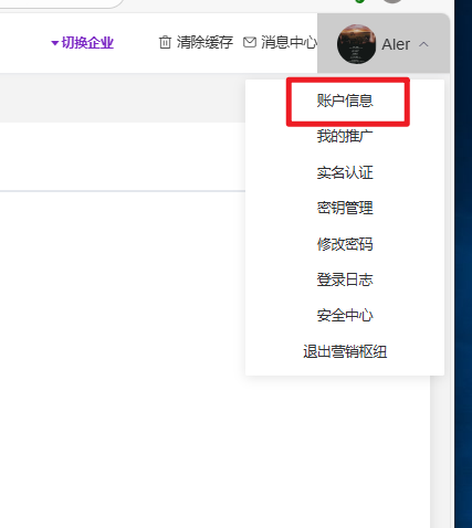 操作路径:后台首页—右上角头像—账户信息