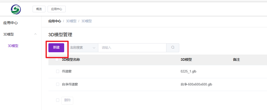 进入 3D 模型管理页面后,点击列表左上角的“新建”按钮。在基本信息编辑页中,首先在“3D 模型名称”一栏输入该模型的名字,以便于后续在列表中辨认。