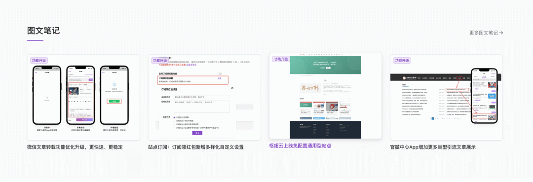 首页现已支持展示以下全部内容类型,各板块均具备最适合该类型的呈现方式。并可通过管理后台自由配置显示与排序: