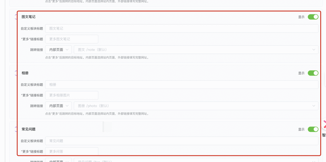 配合首页新增的各类板块,本次升级我们为首页设置页面里增加了对应板块的配置项目