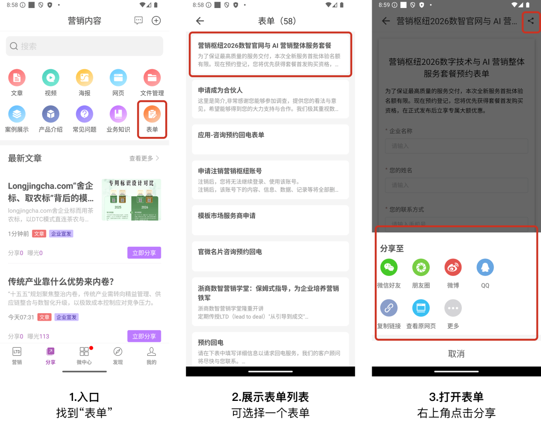 3) 增加表单快捷分享