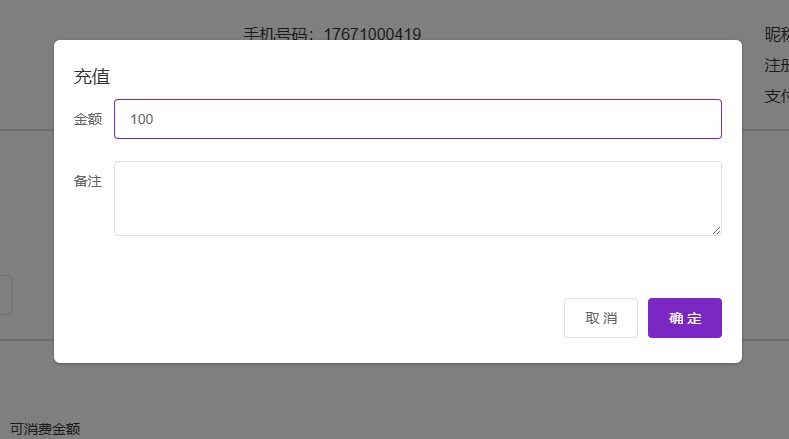 在充值窗口中填写本次需要充值的金额,并在备注中补充本次充值说明,方便后续查询记录。确认填写无误后,点击「确定」,这笔金额就会充值到该会员的余额中。