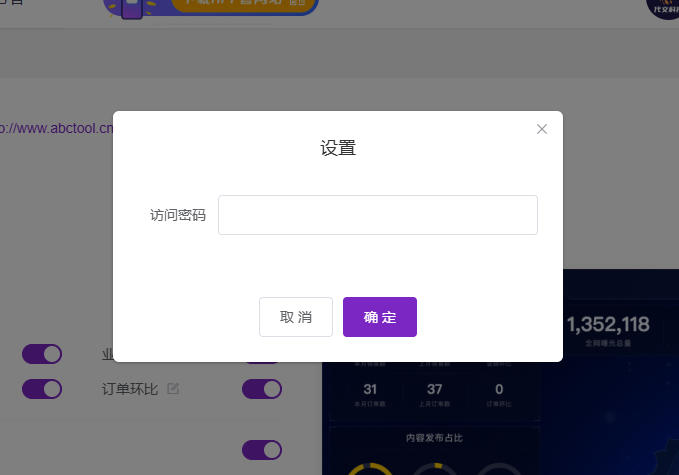 设置完成后,再次访问数据大屏时,页面会先显示“数据大屏访问验证”界面。只有输入你设置的访问密码并验证通过后,才可以进入数据大屏查看具体数据。