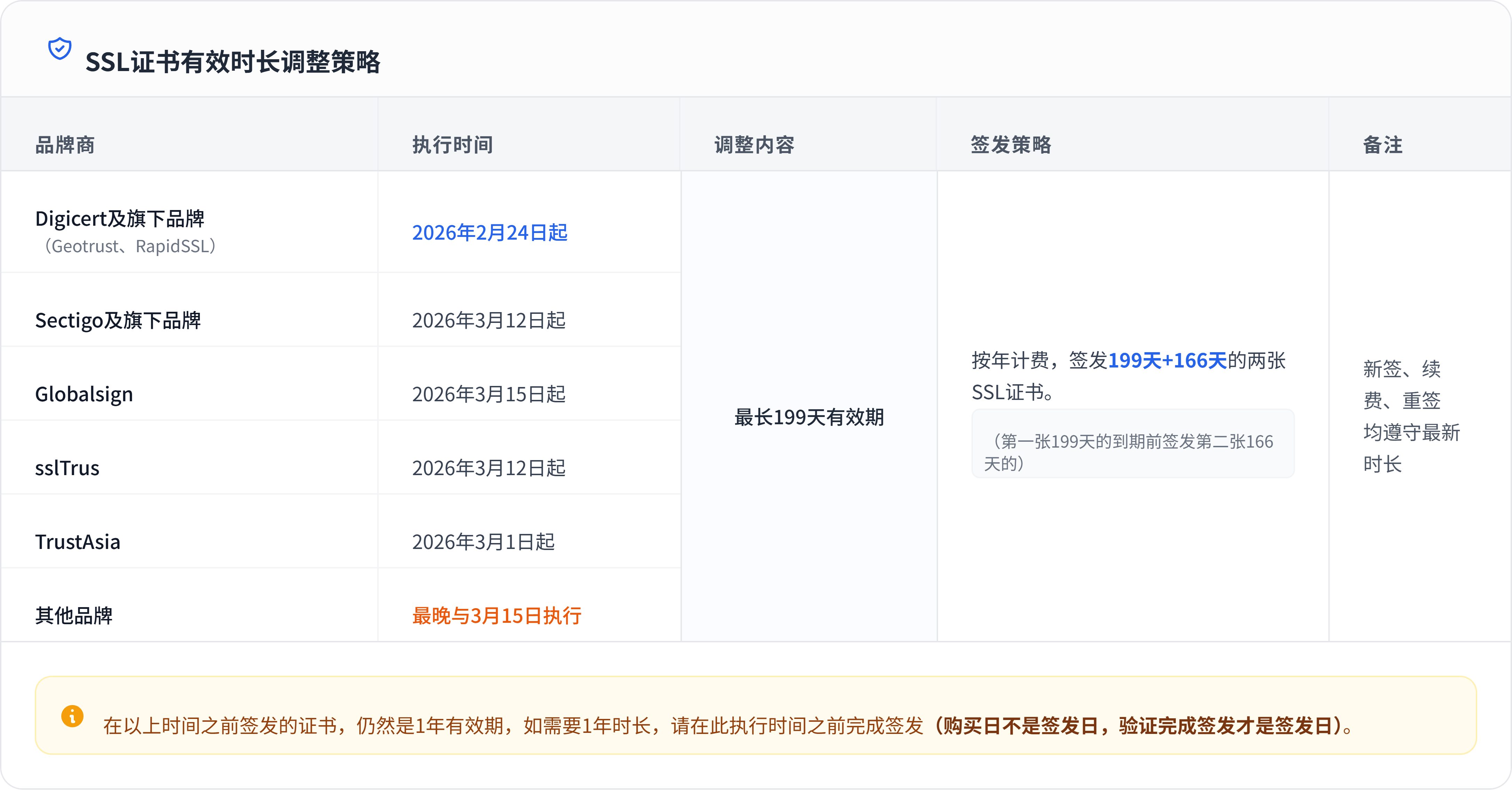 由于SSL证书的CA签发机构价格上涨导致成本上升,我司将在2026年4月8日对以下几款产品进行价格调整。具体如下: