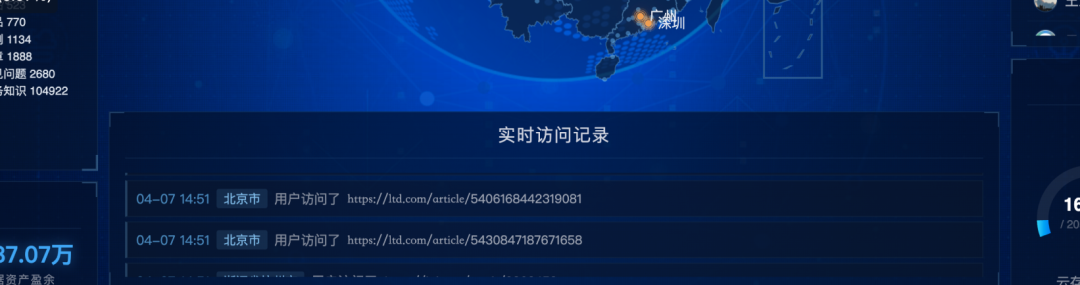 如果你已经开启了数据大屏,在查看实时访问记录时发现网址没有显示完整链接,这也是正常的。现在访问记录中会直接展示域名,方便你在同一个大屏里区分多个域名的数据来源。