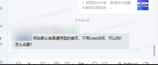 如果你的通用站点当前需要通过「域名/site」才能访问,但你希望用户直接输入主域名就能打开通用站点内容,可以在域名绑定时把通用站点路径配置到主域名上。这样用户访问主域名时,系统会按你设置的路径打开对应页面。
