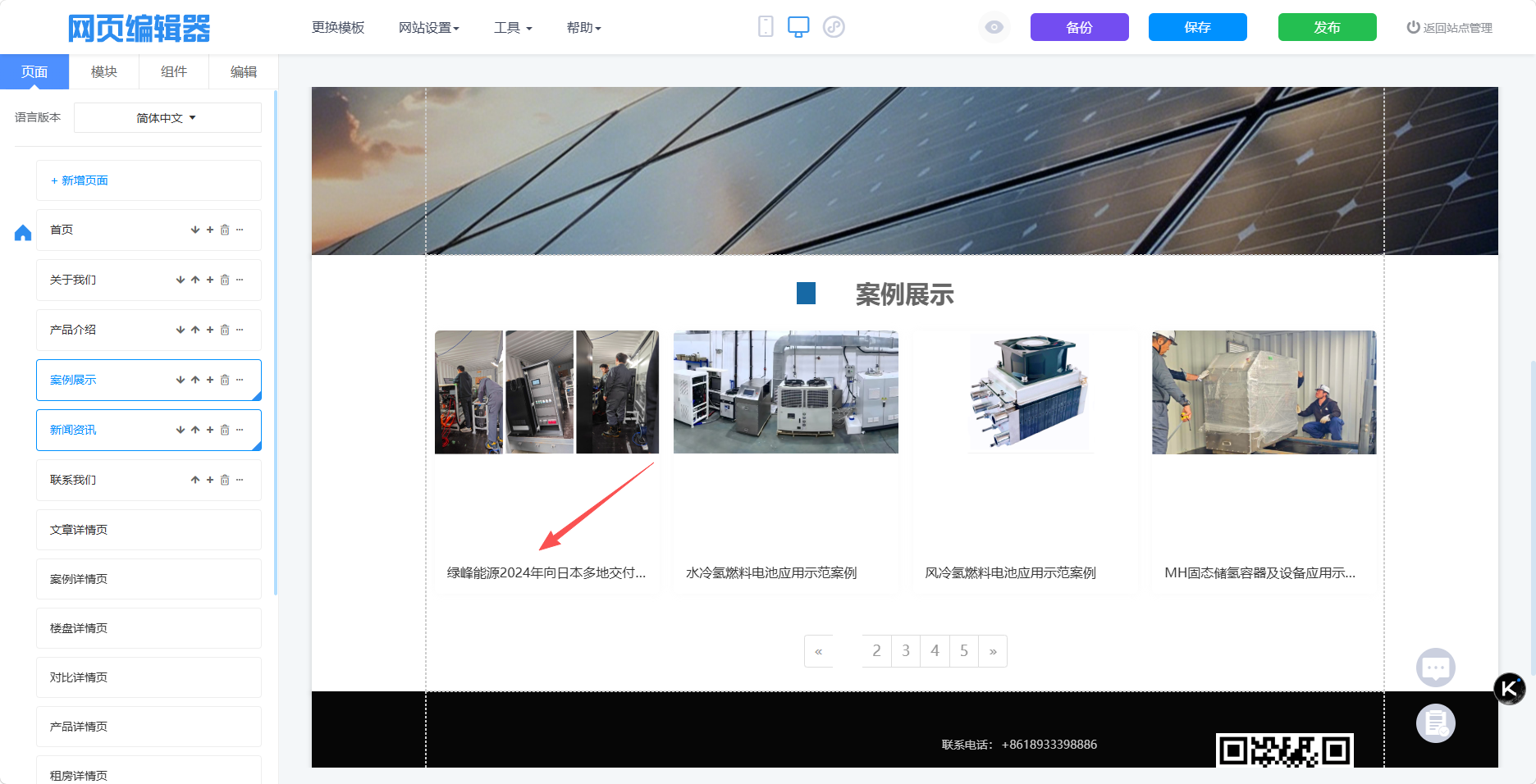 操作路径:网站编辑器—选中内容组件—编辑—列表样式