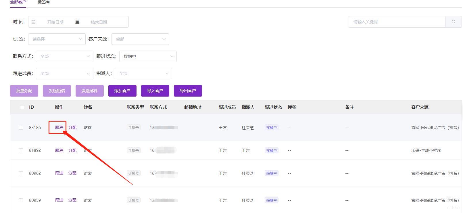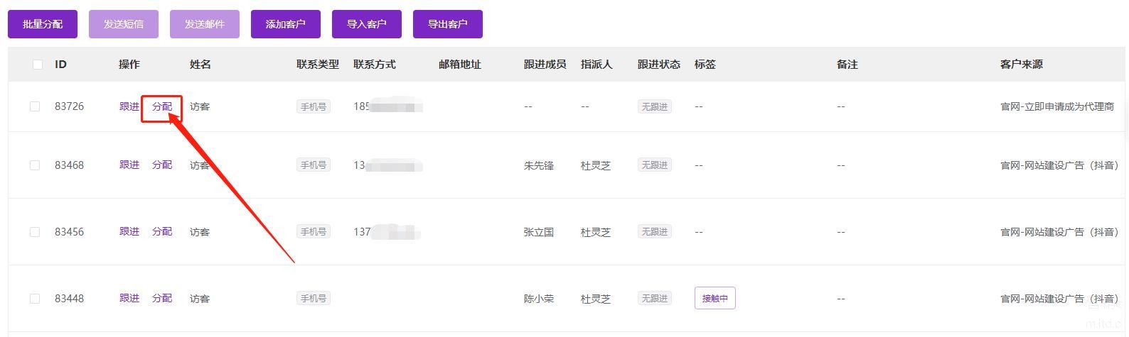 一键分配跟进人员