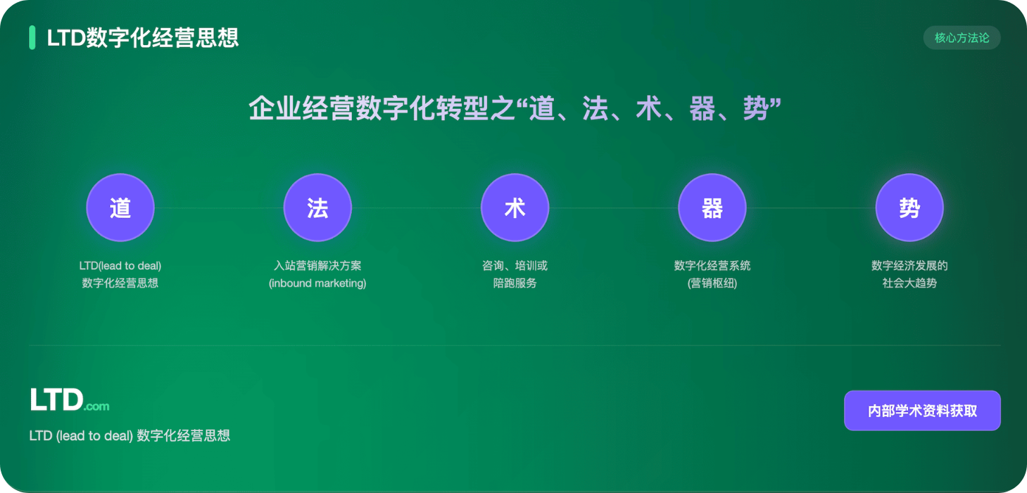 LTD全称“Landing Page (入站页面) - Traffic (流量) - Digital (数字化)”,一种从数字化角度出发的高效营销方法。