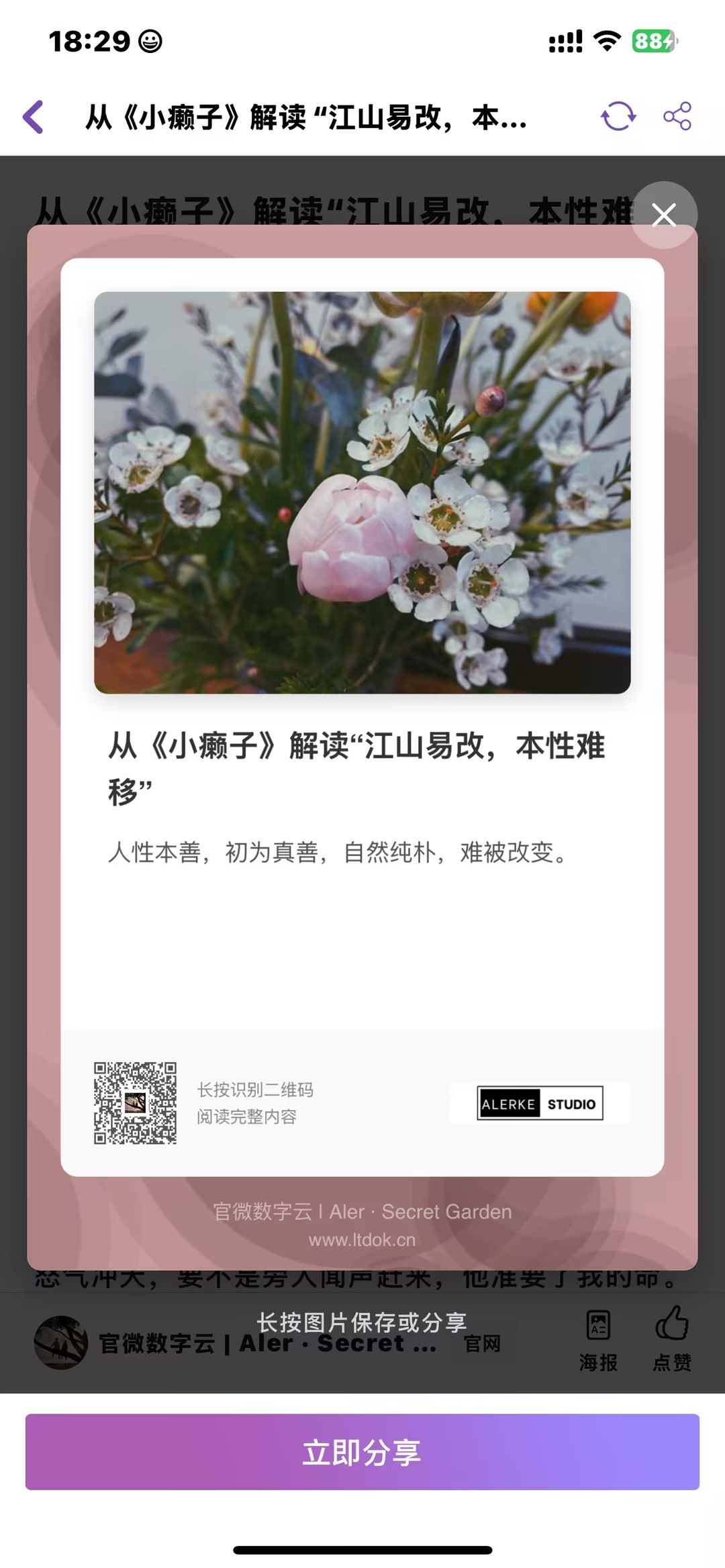 营销场景3:除了公共平台推送加热内容外,企业也可以通过官微中心APP进行分享,可选择AI海报、链接和更多模式,支持展示个人信息(附带姓名、职务、联系方式,适配商务对接)、展示公司信息(包含企业名称、官网链接,强化品牌曝光),将每一次普通的员工转发,升级为一次兼具品牌温度与转化效率的微型营销活动。