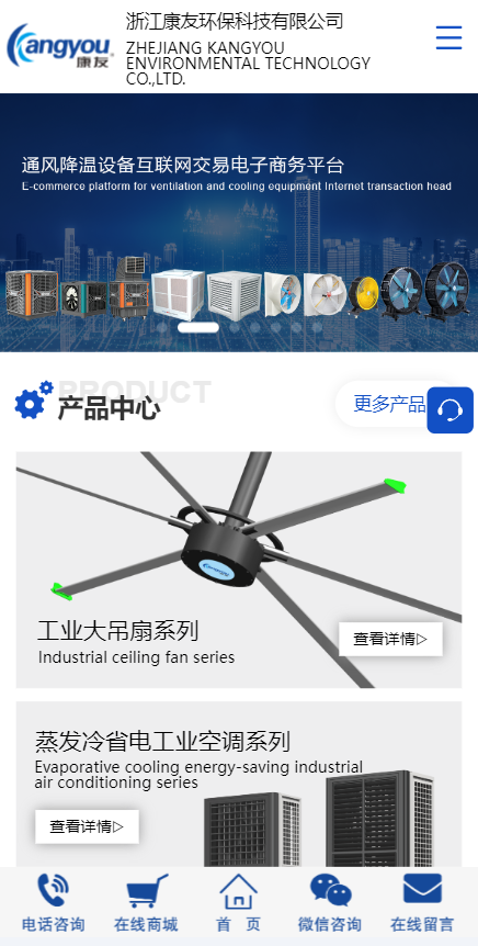 浙江康友环保科技有限公司拥有现代化工业生产和研发基地,企业先后通过ISO9001:2008质量管理体系、ISO14001:2004环境管理体系认证、国家产品3C强制认证、产品环境标志认证及欧盟的CE认证,主要生产产品是工业大吊扇,环保冷风机,负压风机,冷凝节能空调等。其节能环保冷风机获得了多项国家专利及省级工业新产品鉴定。