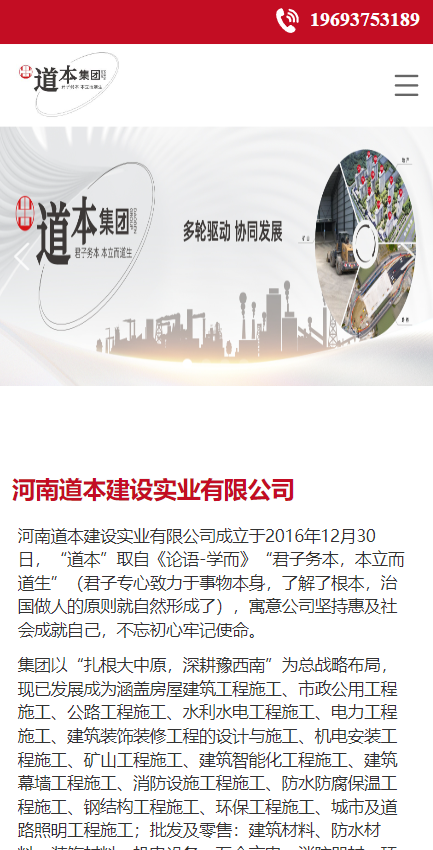 河南道本建设实业有限公司成立于2016年12月30日,“道本”取自《论语-学而》“君子务本,本立而道生”(君子专心致力于事物本身,了解了根本,治国做人的原则就自然形成了),寓意公司坚持惠及社会成就自己,不忘初心牢记使命。