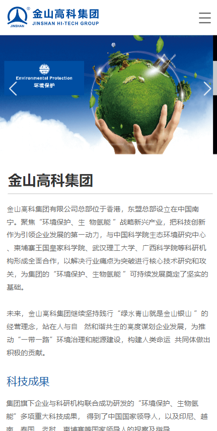⾦⼭⾼科集团有限公司总部位于⾹港,东盟总部设⽴在中国南宁。聚焦“环境保护、⽣物氢能 ”战略新兴产业,把科技创新作为引领企业发展的第⼀动⼒,与中国科学院⽣态环境研究中⼼ 、柬埔寨王国皇家科学院、武汉理⼯⼤学、⼴西科学院等科研机构形成全⾯合作,以解决⾏业痛点为突破进⾏核⼼技术研究和攻关,为集团的“环境保护、⽣物氢能 ”可持续发展奠定了坚实的基础。