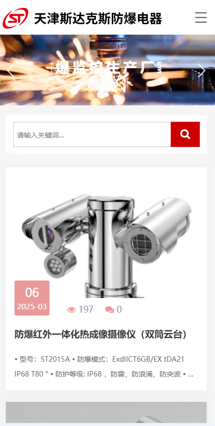 天津斯达克斯防爆电器科技有限公司是一家集防爆工业电视监控系统技术开发、生产和销售为一体的专业性科技公司,属中国安全防范产品行业协会会员。公司主要人员在防爆工业电视监控方面 有十多年的丰富经验,在国内工业电视行业享有较高知名度。公司拥有齐备的科研、生产设备,所有 产品均由我公司自行研发, 自行设计, 自行生产。