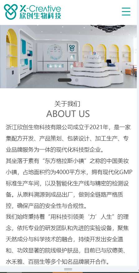 浙江欣创生物科技有限公司成立于2021年,是一家集配方开发、产品策划、包装设计、加工生产、专业品牌服务为一体的现代化科技型企业。 其坐落于素有“东方格拉斯小镇”之称的中国美妆小镇,占地面积约为4000平方米,拥有现代化GMP标准生产车间,以及智能化生产线与精密的检测设备。