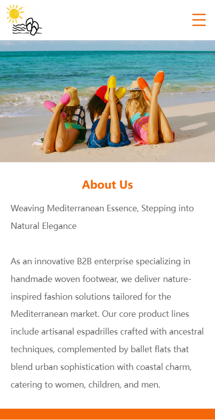 As an innovative B2B enterprise specializing in handmade woven footwear, we deliver nature-inspired fashion solutions tailored for the Mediterranean market. Our core product lines include artisanal espadrilles crafted with ancestral techniques, complemented by ballet flats that blend urban sophistication with coastal charm, catering to women, children, and men.