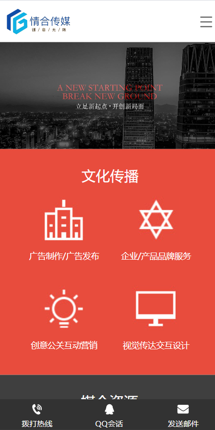 广州情合文化传媒有限公司以创意为产品向国内外客户提供品牌服务。从宣传片拍摄,到广告代理投放,以及品牌设计推广,从微博战略营销,到微电影创作,以及各类文化交流演出,汇聚优势人才战略,形成客户所需的一揽子解决方案——创意策划、文案撰稿、创意阐述、导演台本、演员选择、艺术指导、专家团项目论证、方案实施、媒体选择、作品释放。