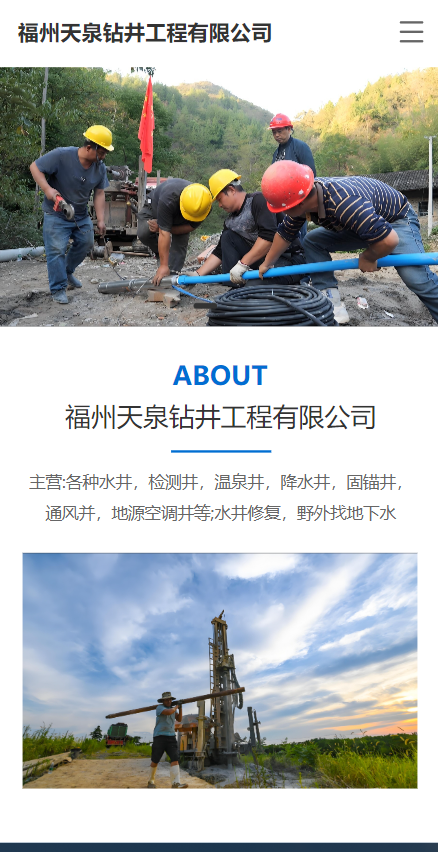 福州天泉钻井工程有限公司主营:各种水井,检测井,温泉井,降水井,固锚井,通风并,地源空调井等;水井修复,野外找地下水