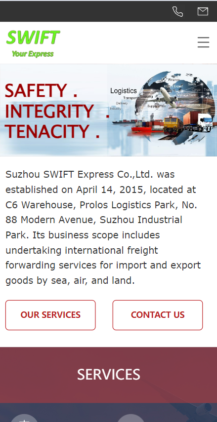 Suzhou SWIFT Express Co.,Ltd. was established on April 14, 2015, located at C6 Warehouse, Prolos Logistics Park, No. 88 Modern Avenue, Suzhou Industrial Park. Its business scope includes undertaking international freight forwarding services for import and export goods by sea, air, and land.