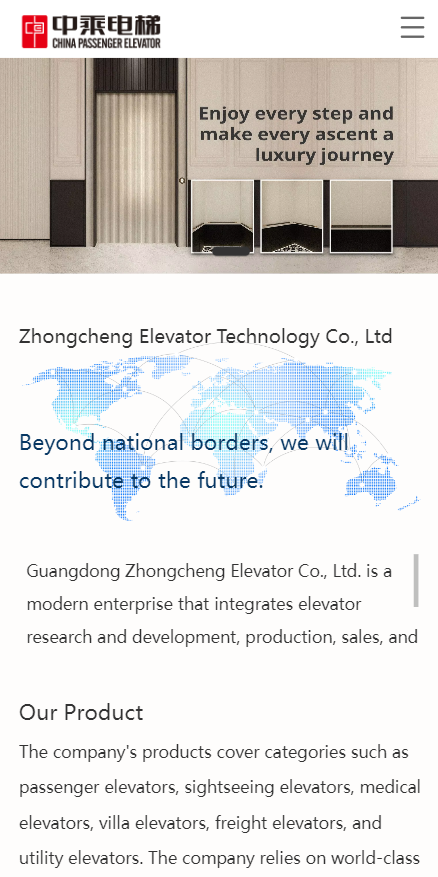 Guangdong Zhongcheng Elevator Co., Ltd. is a modern enterprise that integrates elevator research and development, production, sales, and service, focusing on providing safe, intelligent, and efficient elevator products and solutions.