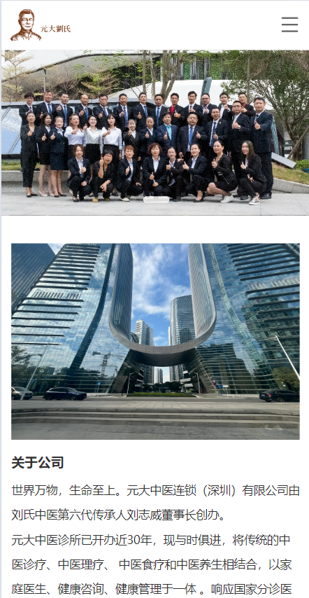 世界万物,生命至上。元大中医连锁(深圳)有限公司由刘氏中医第六代传承人刘志威董事长创办。 元大中医诊所已开办近30年,现与时俱进,将传统的中医诊疗、中医理疗、 中医食疗和中医养生相结合,以家庭医生、健康咨询、健康管理于一体 。