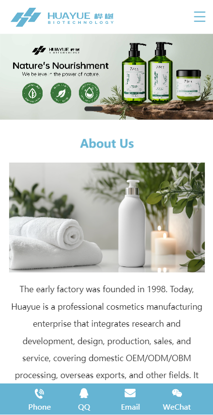 The early factory was founded in 1998. Today, Huayue is a professional cosmetics manufacturing enterprise that integrates research and development, design, production, sales, and service, covering domestic OEM/ODM/OBM processing, overseas exports, and other fields.