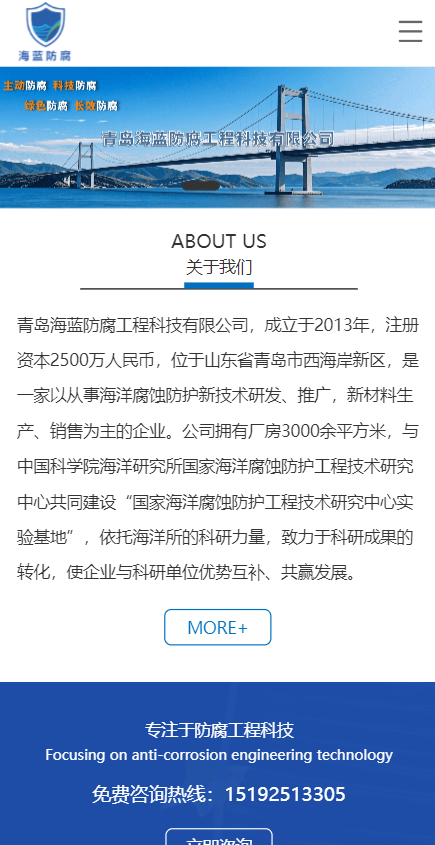 青岛海蓝防腐工程科技有限公司,成立于2013年,注册资本2500万人民币,位于山东省青岛市西海岸新区,是一家以从事海洋腐蚀防护新技术研发、推广,新材料生产、销售为主的企业。