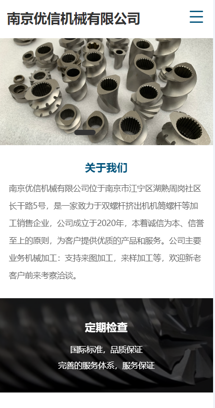 南京优信机械有限公司位于南京市江宁区湖熟周岗社区长干路5号,是一家致力于双螺杆挤出机机筒螺杆等加工销售企业,公司成立于2020年,本着诚信为本、信誉至上的原则,为客户提供优质的产品和服务。公司主要业务机械加工:支持来图加工,来样加工等,欢迎新老客户前来考察洽谈。