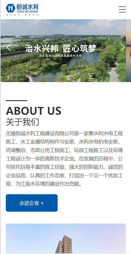 无锡恒诚水利工程建设有限公司是一家集水利水电工程施工、水工金属结构制作与安装、水利水电机电安装、河湖整治、市政公用工程施工、环保工程施工以及环境工程设计为一体的高新技术企业。