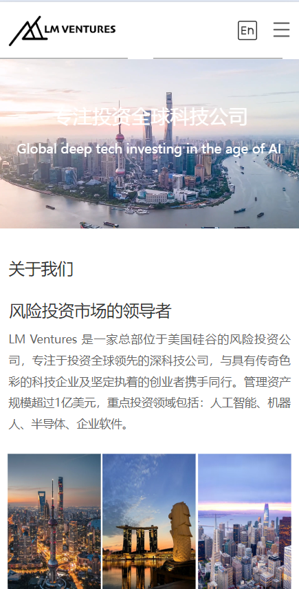 LM Ventures是一家总部位于美国硅谷的风险投资公司,投资于全球领先的高科技公司。我们与具有远见的科技企业和有决心的创业家合作。管理资产超过1亿美元,我们的关注点包括人工智能、机器人、半导体和企业软件。