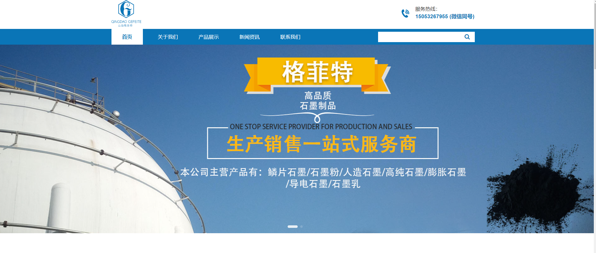 青岛格菲特石墨碳素有限责任公司,成立于2005年,已通过ISO 9001质量体系认证,ISO 14001环境管理体系认证,公司位于山东省青岛市莱西市。本公司是国有企业山东南墅石墨矿改制企业,是一家专业从事石墨生产企业,拥有现代化生产设备和完善的检测手段。占地面积8000多平方米,建筑面积4000多平方米,年生产能力10000吨。主要产品有:鳞片石墨、石墨粉、导电石墨、人造石墨、颗粒石墨、微粉石墨、石墨乳脱模剂、石墨制品等。