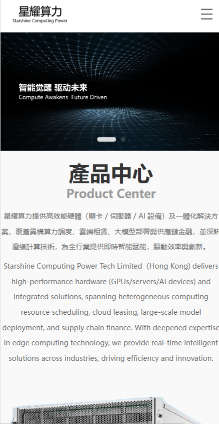 香港星耀算力科技有限公司,是一家專注於以創新技術與生態協作推動社會智慧化發展的科技前沿企業,聚焦智算集群服務及智算產業全案落地。通過「硬件 + 軟件 + 場景」融合模式,推出異構算力調度平台、智慧城市等解決方案賦能數字經濟時代的新型基礎設施建設,在行業內具有前瞻性的戰略眼光和深厚的技術積累。