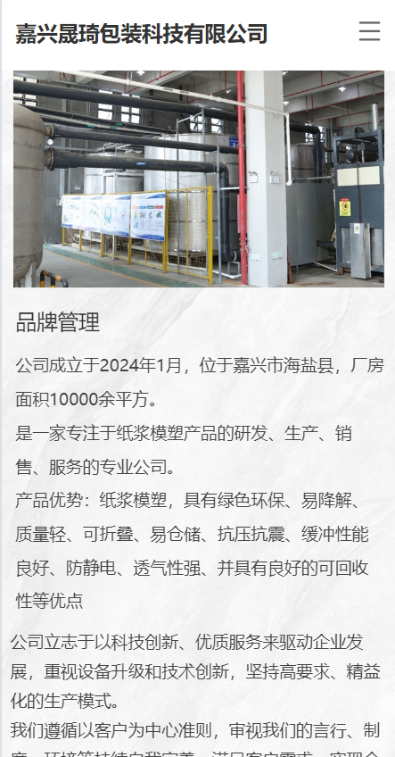 是一家专注于纸浆模塑产品的研发、生产、销售、服务的专业公司。 产品优势:纸浆模塑,具有绿色环保、易降解、质量轻、可折叠、易仓储、抗压抗震、缓冲性能良好、防静电、透气性强、并具有良好的可回收性等优点