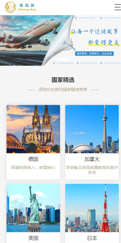 金泓岸于2025年初正式在中国内地启动,专注于移民、留学、海外资产配置等综合服务。我们聚焦美国、加拿大、日本、德国、希腊、塞浦路斯等主流国家,通过专业、安全、高效的服务体系,为有海外规划的意向客户提供一站式解决方案。