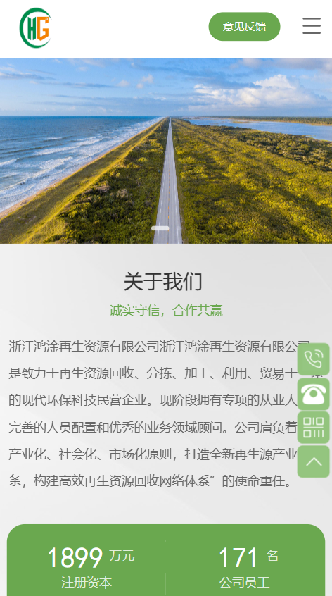 浙江鸿淦再生资源有限公司,是致力于再生资源回收、分拣、加工、利用、贸易于一体的现代环保科技民营企业。现阶段拥有专项的从业人员、完善的人员配置和优秀的业务领域顾问。公司肩负着“用产业化、社会化、市场化原则,打造全新再生资源产业链条,构建高效再生资源回收网络体系 ”的使命重任。