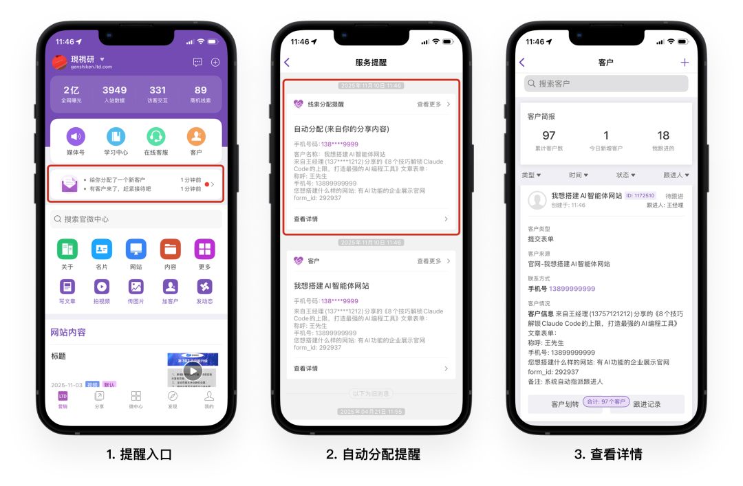 以及所有通过移动分享页进行获客、需要对线索分配提醒进行清晰管理的场景