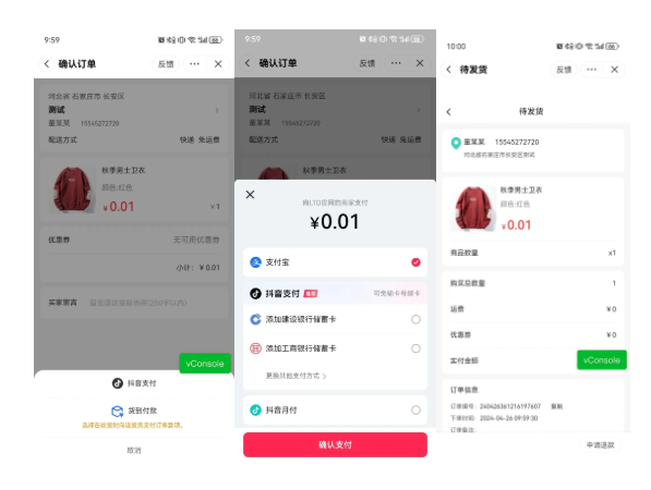 深度适配抖音小程序生态,集成抖音支付及主流第三方支付方式,满足抖音用户支付习惯