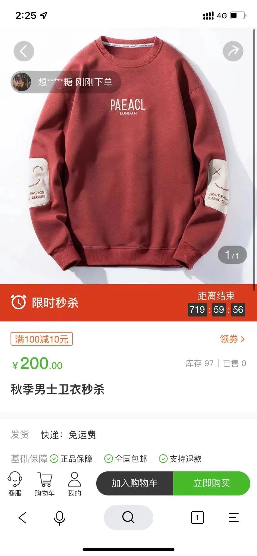 填写活动名称"秋季男士卫衣秒杀",选择参与商品