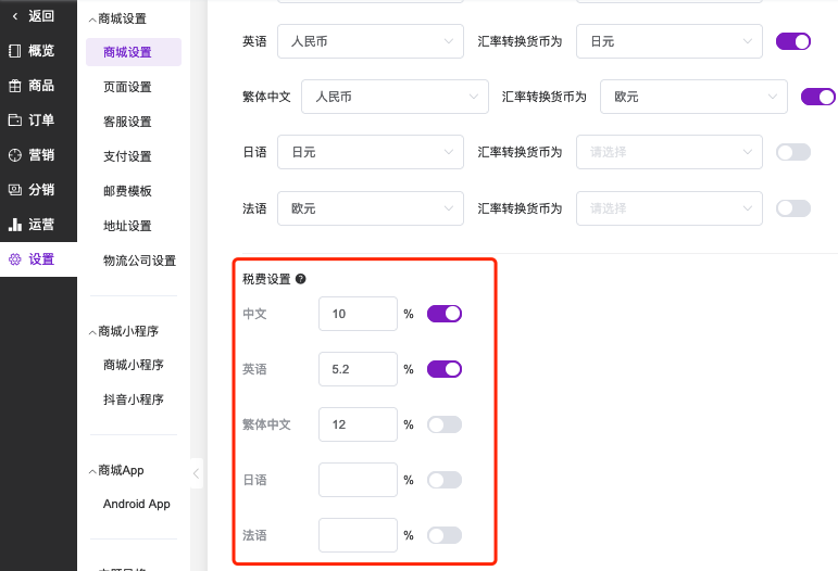 支持按币种设置固定比例,税费计算准确透明,提升购物体验