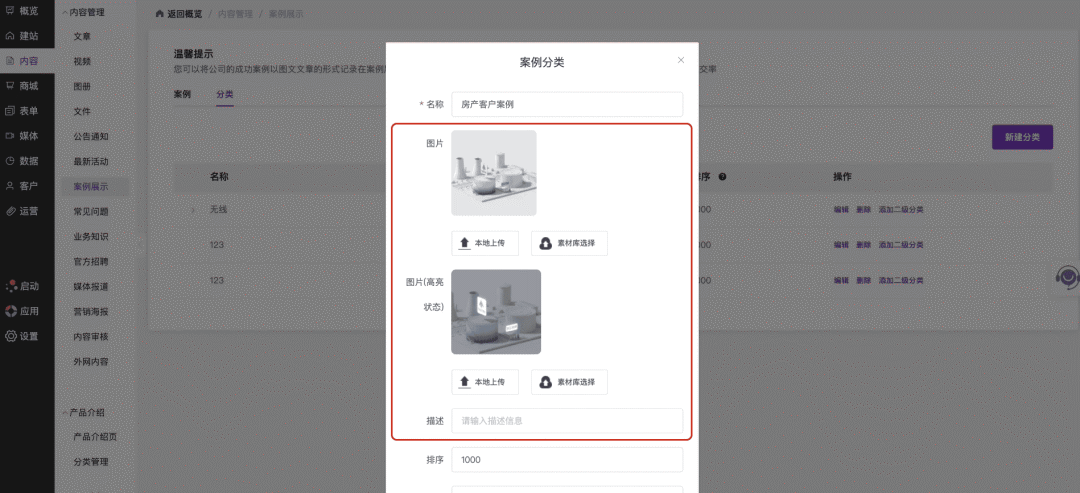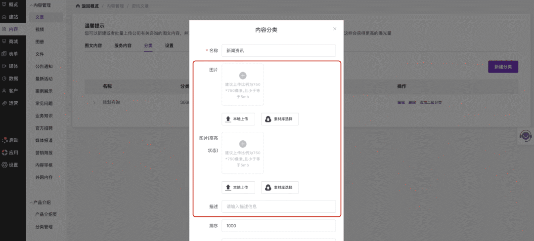 内容分类支持图文并茂,打破纯文字列表的单调,大幅提升网站页面的设计感与专业度。