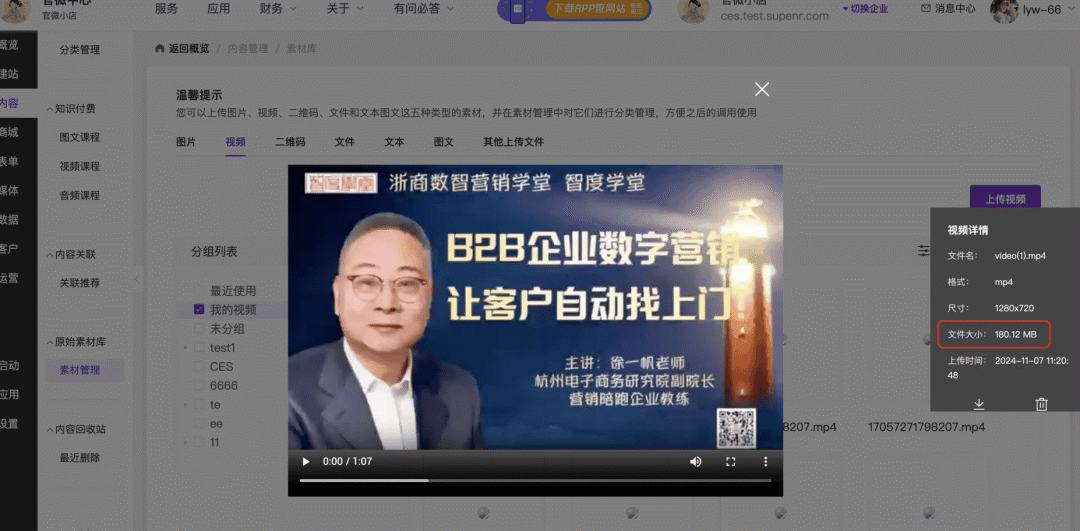 进入「素材库」,点击任意图片或视频查看详情,在右侧信息面板即可查看到“文件大小”信息。
