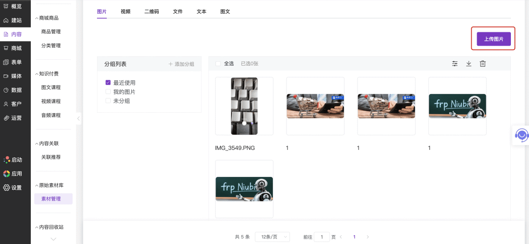 进入「素材库」,点击“上传”按钮,同样选择不超过50MB的图片文件进行上传,作为素材储备。
