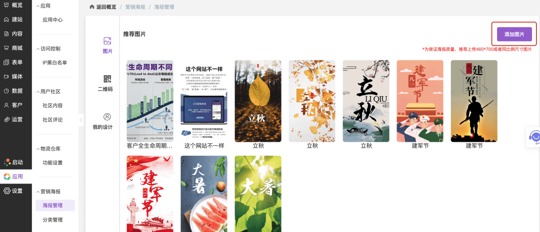 将官微中心全平台(包括网站编辑器、素材库、海报制作等)的图片上传大小限制,从原有的10MB/3MB标准,统一大幅提升至50MB,满足高分辨率、高质量图片的上传需求。