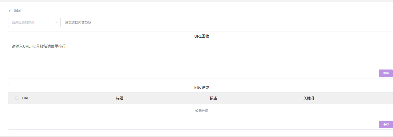 图示:外部内容批量导入器,通过输入转载链接并选择分类,系统自动抓取并填充TDK信息,实现外部内容的一键式、批量化、规范化入库。