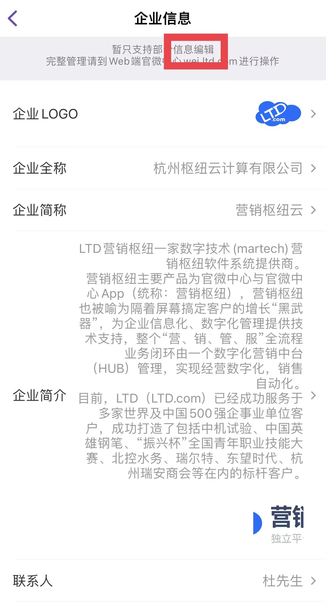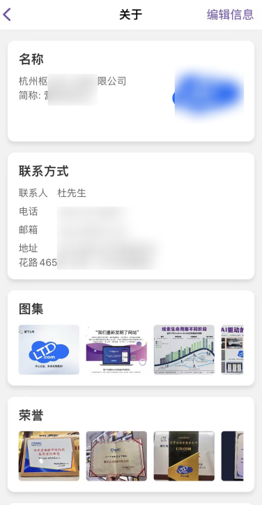 图示:移动端企业信息管理入口,允许管理员在手机上快速更新企业核心信息,满足紧急修改需求,是Web端深度管理的有效补充。