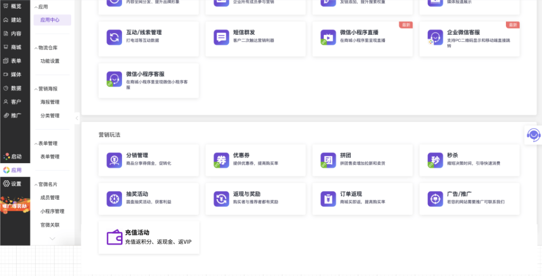 登录官微中心,依次点击「应用」-「充值活动」,进入功能管理页面。