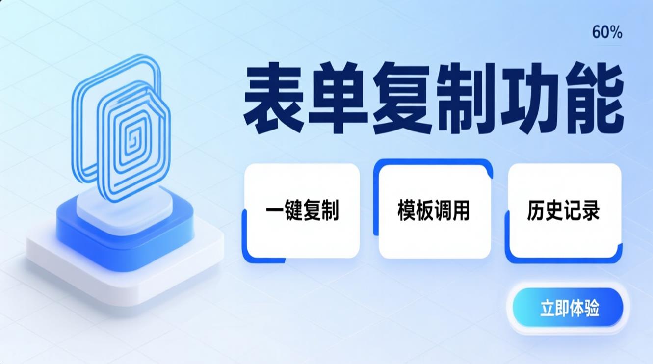 对比手动重新创建表单,复制功能可将相似表单的创建时间从数小时缩短至数秒,效率提升数百倍。