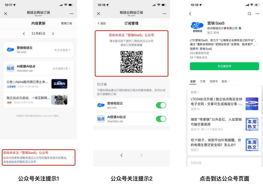 网站无需额外开发即可自动拥有订阅能力,并将用户沉淀至公众号私域,为后续的深度服务、互动与营销创造了可能。
