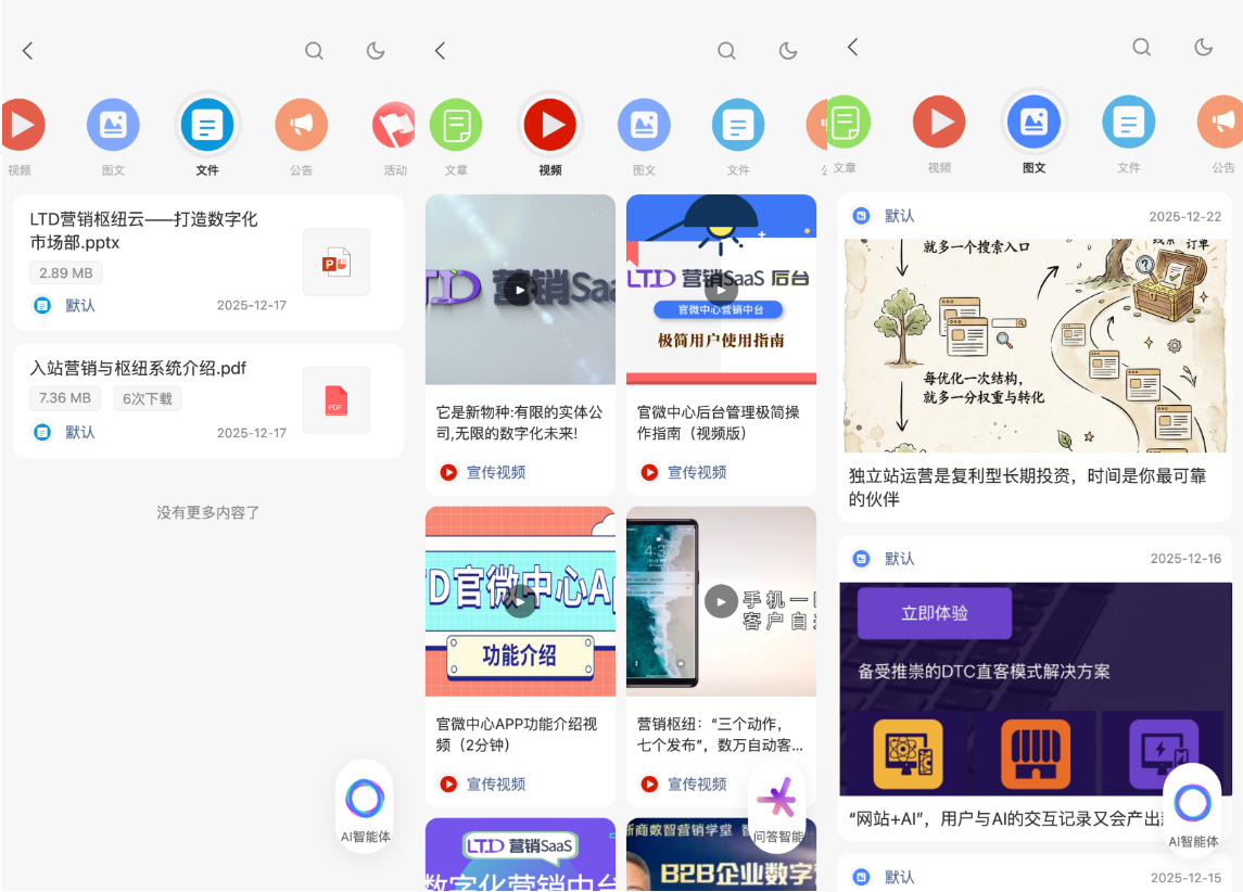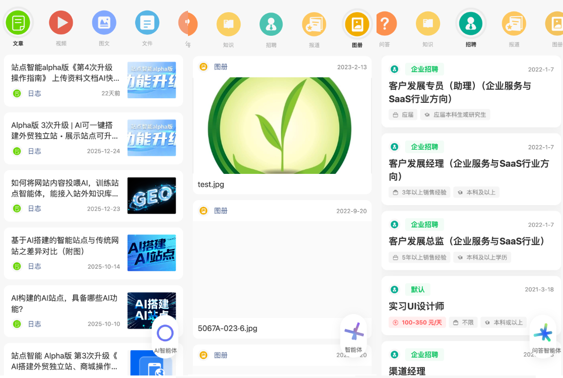 用户登录枢纽云后台,进入“内容”模块,在相应的类型下(如文章、视频、问答)创建并发布内容。