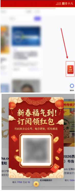 展示了网站前端向用户展示的“订阅领红包”宣传引导界面,通过节日氛围和“红包”利益点吸引用户点击参与,是用户旅程的起点。